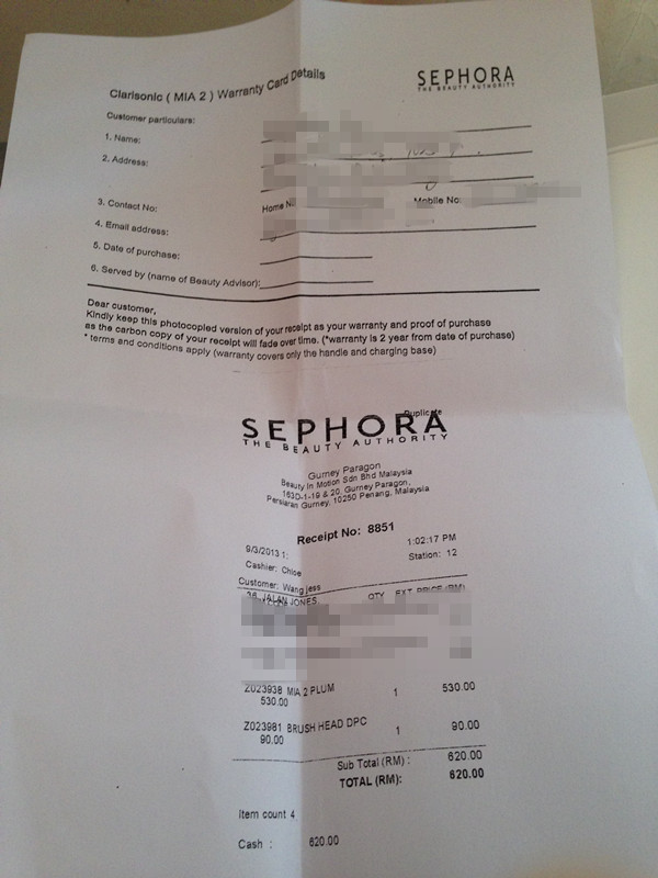 在sephora购买 她们会给你这张warranty card